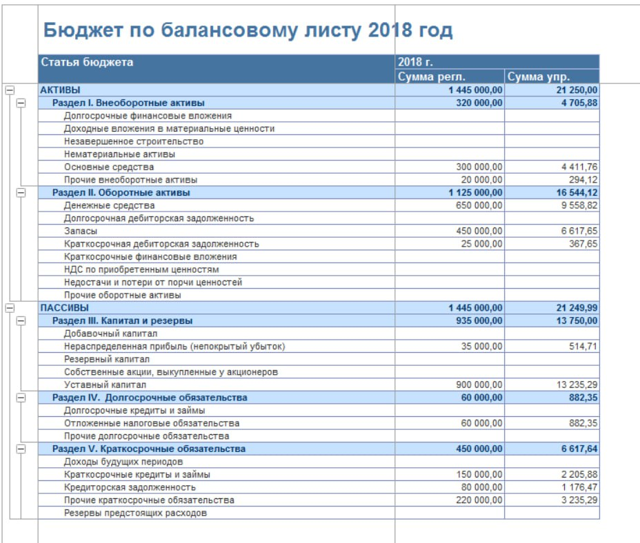 Бюджет по балансовому листу в БИТ.ФИНАНС