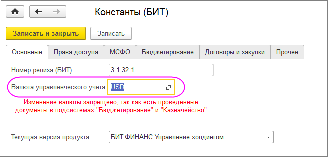 Настройка валюты управленческого учета в БИТ.ФИНАНС