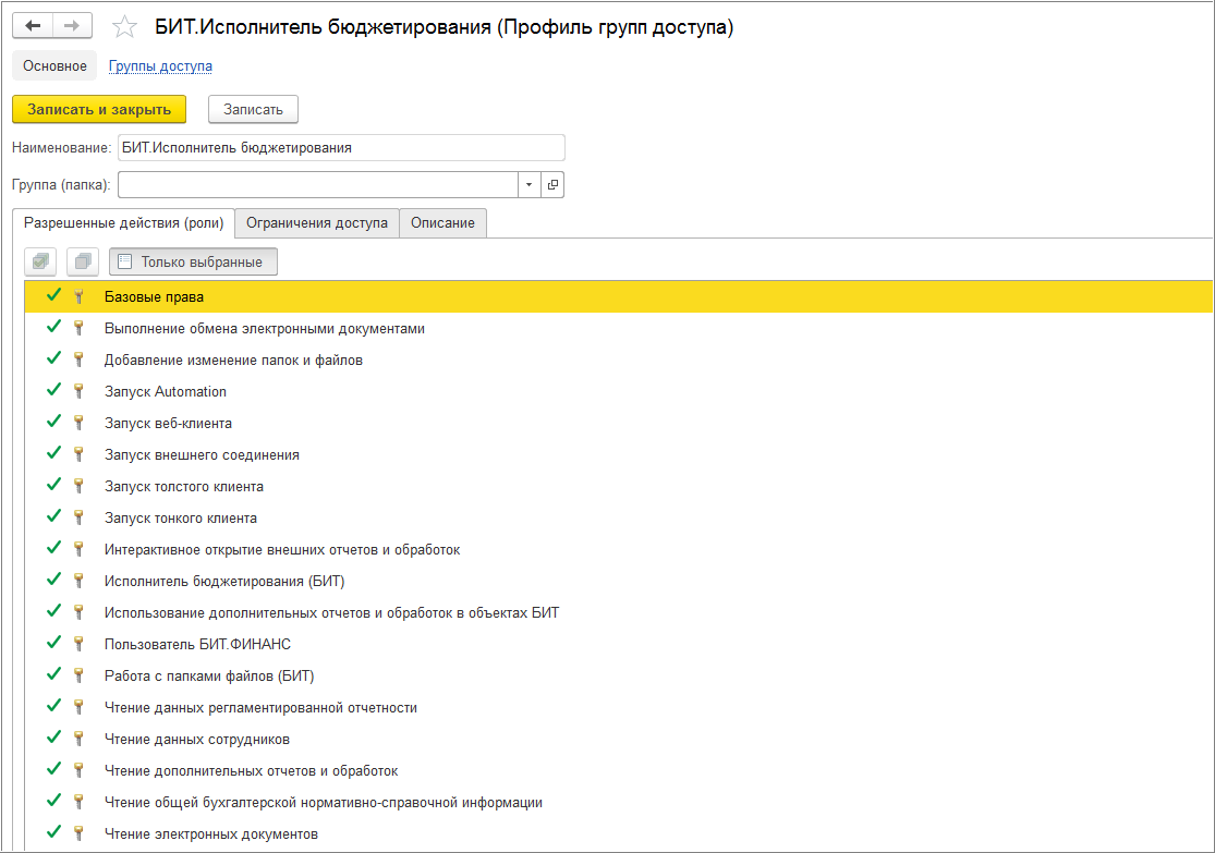 Профиль исполнителя бюджетирования в БИТ.ФИНАНС