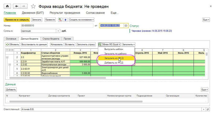 Загрузка бюджета из шаблона Excel в БИТ.ФИНАНС