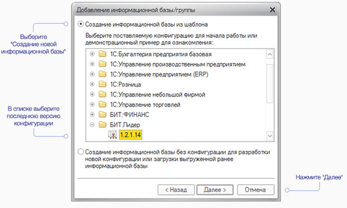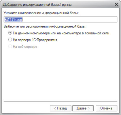 Первый запуск 1С-конфигурации «БИТ.Лидер»