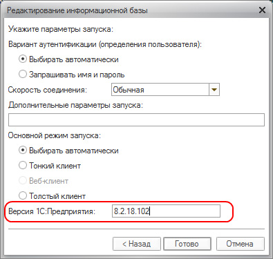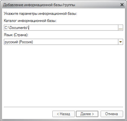информационной базы нажимать «Далее» до тех пор, пока не будет выведено «Укажите параметры запуска».