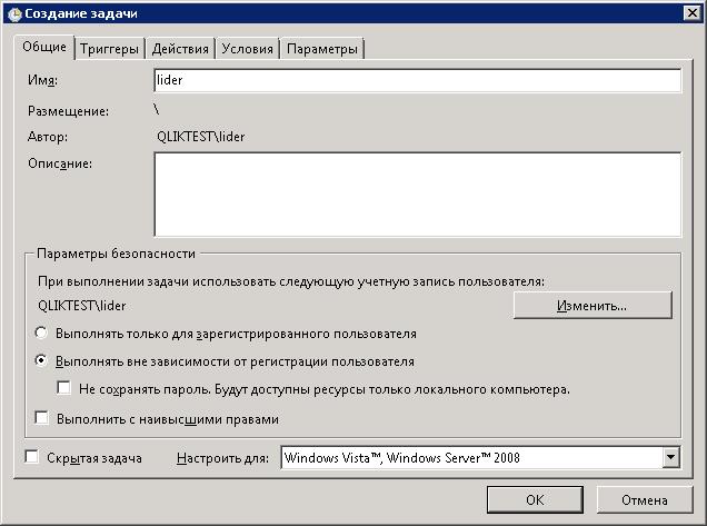 Возможно, потребуется ввести пароль пользователя, от которого будет запускаться задача.