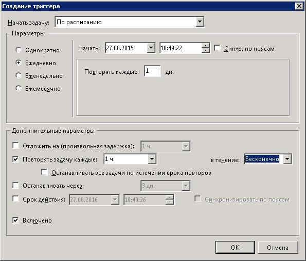 Для регулярных выгрузок данных следует отметить «ежедневно», «повторять задачу каждые:» (также выбрать желаемый интервал выгрузок) и выбрать «Бесконечно».