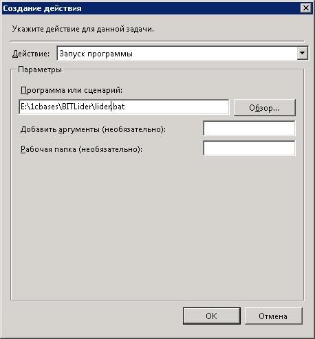 Данная настройка будет действовать в случае выполнения регламентных заданий на сервере 1С:Предприятия (если база БИТ.Лидер находится на сервере 1С:Предприятия), либо при открытом окне «Автоматическое выполнение регламентных заданий» (если база БИТ.Лидер файловая). При использовании планировщика операционной системы Windows для выполнения задания БИТ.Лидер временной интервал настраивается в свойствах задания планировщика.