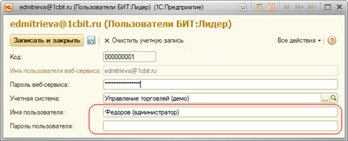 БИТ:Лидер находится список «Пользователи БИТ:Лидер». Откройте настройки пользователя БИТ:Лидер,